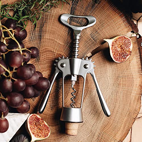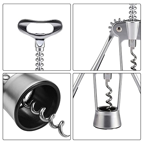 ★ Eenvoudig in gebruik: de flesopener heeft een draaibaar handvat, schroef gewoon de spindelvormige scherpe schroefdraad in de kurk en druk moeiteloos op de hefboomarm om de kurk volledig te openen.