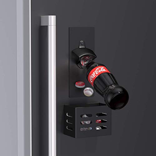 LEcylankEr Wandmontage Flesopener,Staal Bierflesopener met Magnetische Dopvanger,Bar Accessoires voor Thuis,Terras,Garage (zwart)