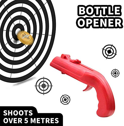 Specification: MAEXUS Cap Gun Flessenopener, pistool, bierflesopener, creatieve wijnflesopener, bieropener, pistool, cap, pistool voor thuis, bar, feest, drinken en spel, schiet van 5 meter (rood en grijs)