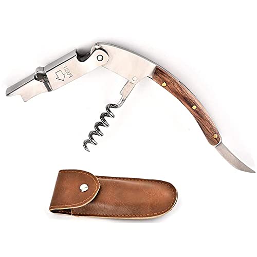 Professionele kurkentrekker, roestvrij staal, moderne kurkentrekker van roestvrij staal, met houten handvat, draagbare baraccessoires, geschikt voor bars, huizen, feesten, restaurants, keuken