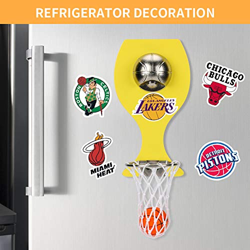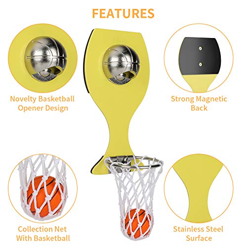 ⏩ 【Nieuw en praktisch ontwerp】 Ontworpen met creatieve basketbalvormopener en basketbalringnet, cool en uniek. Door de stevige openerbodem kunnen de doppen gemakkelijk worden geopend en het mandnet aan de onderkant kan uw flessendoppen netjes opvangen, zodat ze niet op de grond vallen en onder de koelkast verdwijnen. Het is niet alleen een magnetische flesopener, maar ook een geweldige decoratie voor de koelkast in de huiskeuken.
