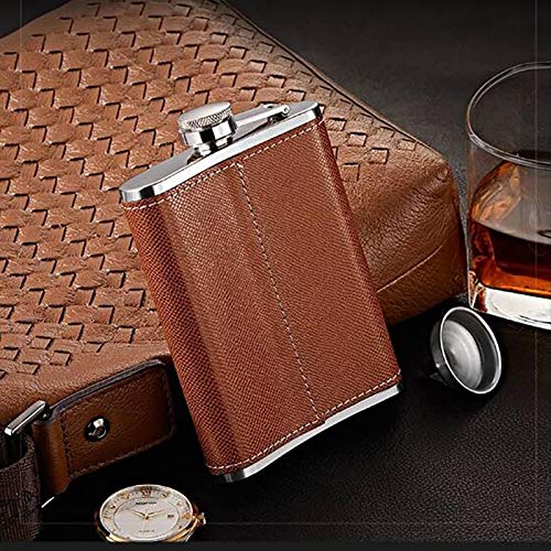 Specification: 8 oz Heupfles Set Rvs Zakfles Leer Verpakt Heupfles voor Mannen Beste Cadeau Klimmen Bar Party drinker (Size : 8oz/230ML)