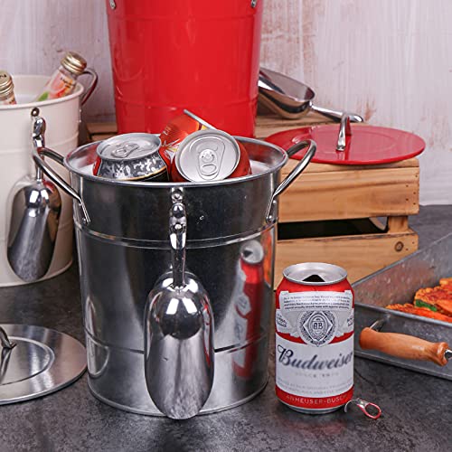 IJsemmer, roestvrijstalen ronde draagbare ijsemmer, feest ijsemmer met deksel en tang voor gezinnen, bijeenkomsten, barbecues, picknicks, partijen, bars, bars,White