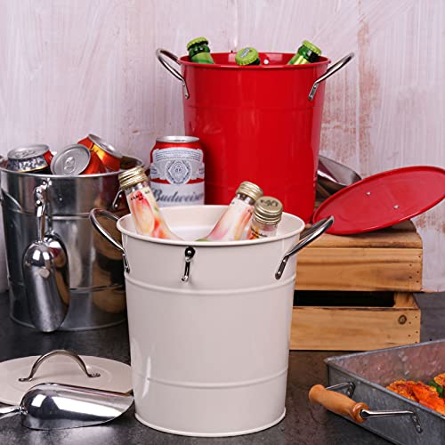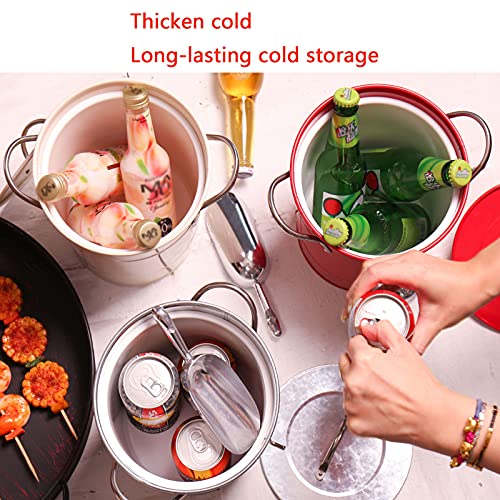 Specification: IJsemmer, roestvrijstalen ronde draagbare ijsemmer, feest ijsemmer met deksel en tang voor gezinnen, bijeenkomsten, barbecues, picknicks, partijen, bars, bars,White