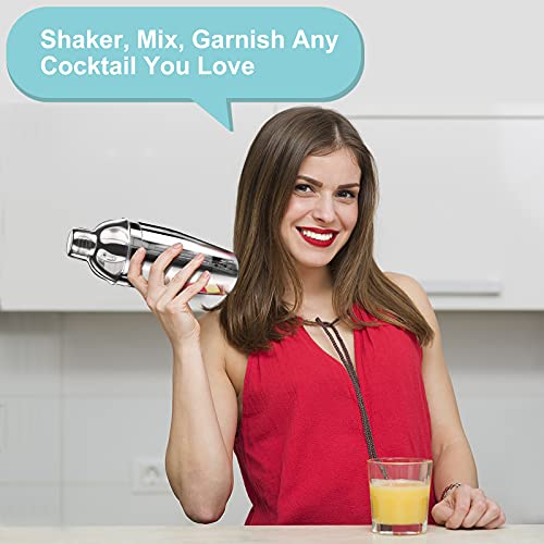 ✔ 8-In-1 Cocktailmaking-Set: Deze cocktailshakerset bevat alle bartending apparatuur die je nodig hebt voor het mengen van heerlijke cocktails. Je krijgt -1 x 750 ml cocktailshaker, 2 x flesschenkers, 1 x ijszeef, 1 x barlepel, 1 x jigger, 1x ijstang, 1x muddler.