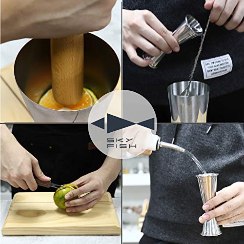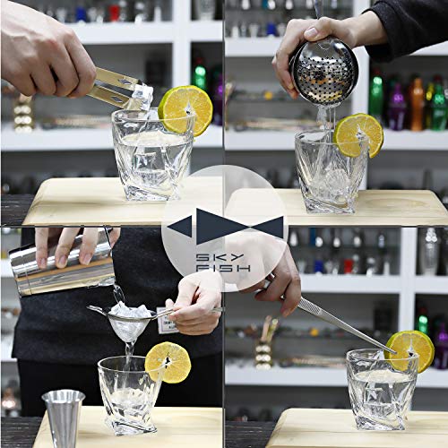 Goed ontworpen zeef & DOUBLE JIGGER: Onze high-end meidoornzeef is uitgerust met een hoge dichtheid veer, waardoor ijsfragmenten of fruitpulp hun weg naar uw drankjes komt. Met nauwkeurige en nauwkeurige metingen voor 2 oz, 1,5 oz, 1 oz en 0,5 oz, onze jigger dekt elke behoefte die u zou kunnen hebben voor alle redelijke cocktails of drankjes.