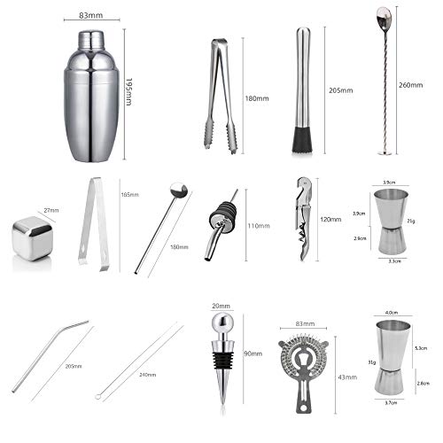 Specification: SUQ Cocktail Maken Set 22-delig, RVS Bartender Kit met Alle Bar Accessoires, 550ml cocktailshaker Bar Tool Set Bartender Kit voor Thuis, Bar, Reizen en Feestjes Buitenshuis