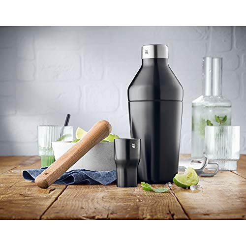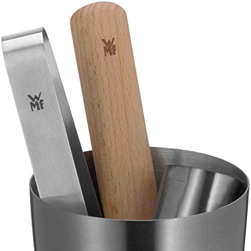 Specification: WMF Baric Cocktailset, 4-delig, barkeeperset met roestvrij stalen cocktailshaker, cl maatbeker, ijstang, houten stamper, in elkaar op te bergen, geschenkdoos