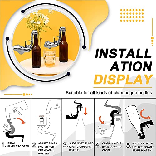 【Brede compatibiliteit】 Ons champagnepistool kan zowel als champagne uitwerper als als bierpistool worden gebruikt, dat compatibel is met elke 350-750 ml champagnefles. Het heeft een uitstekende sluiting en kan als kurk worden gebruikt om de champagne lang fris te houden.