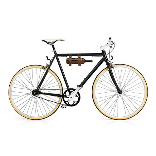 Deze wijnhouder van leer maakt het vervoer van de wijnfles op je fiets kinderspel. Hij kan probleemloos aan de meeste fietsen worden bevestigd. Gewoon de wijnfles erin schuiven en sluiten. Het is een eenvoudige en mooie manier om wijn op je fiets te transporteren, waar je ook gaat, een party, park enz.