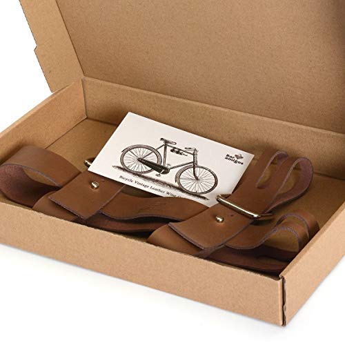 Ideaal voor picknicks: de houder is compatibel met 750 ml grote wijnflessen, een fantastisch retro-artikel. Hoogwaardig design: 100% gelooid leer met hoogwaardige metalen gespen. De houder past op de meeste fietsframes, maar als de fiets een zeer schuine bovenbuis heeft, zorgt dit ervoor dat de wijnfles in de richting van de zadelbuis van de fiets glijdt en op de zadelbuis slaat.