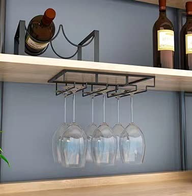 Specification: FIAMER Wijnbekerhouder tafeldecoratie opberghanger metalen organizer voor bar keuken 3 rijen bestek rek onder kast roestvrij stalen hanger opbergplank zwart (zwart)