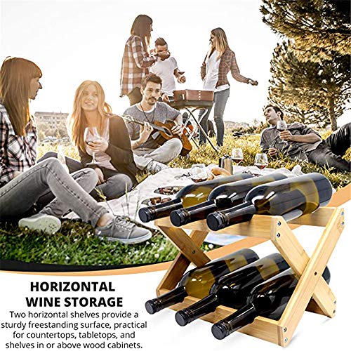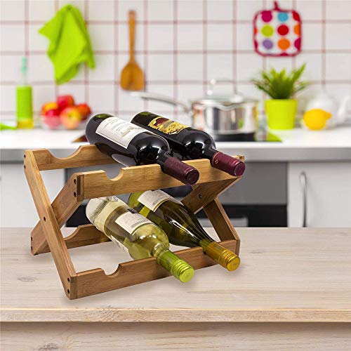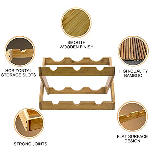 Specification: LQKYWNA 6 fles bamboe wijnrek, opvouwbare dubbele planken aanrecht kleine flessenrek voor keuken, bar en kast