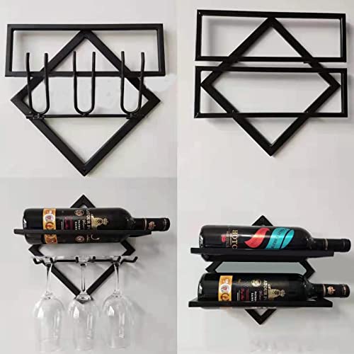 【Ruimtebesparend】Het metalen wandgemonteerde wijnrek kan verschillende wijnflessen en bekers ophangen, zonder bureauruimte in te nemen, efficiënter gebruik van grondstoffen en kan de muur versieren. je kunt het eenvoudig installeren in je restaurant, thuisbar, studeerkamer of wijnkelder